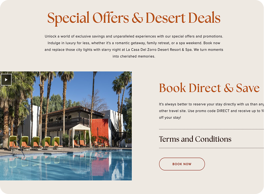 A historic desert resort in California renowned for its serene ambiance and high-end accommodations, La Casa Del Zorro experienced a 31.65% CTR, demonstrating the effectiveness of interactive elements in capturing guest interest and driving conversions.